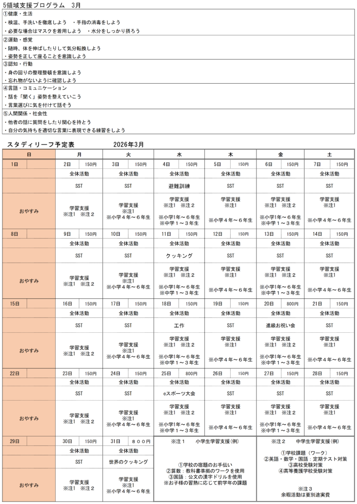 月間予定表